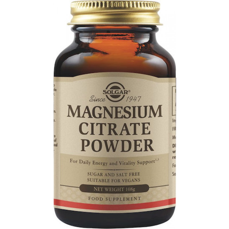 Το Solgar Magnesium Citrate Powder είναι συμπλήρωμα διατροφής σε μορφή σκόνης, που περιέχει κιτρικό μαγνήσιο, μια μορφή μαγνησίου με υψηλή βιοδιαθεσιμότητα και απορρόφηση. Η μορφή σκόνης διευκολύνει την πρόσληψη, ειδικά για όσους δυσκολεύονται με τις κάψουλες ή τα δισκία.