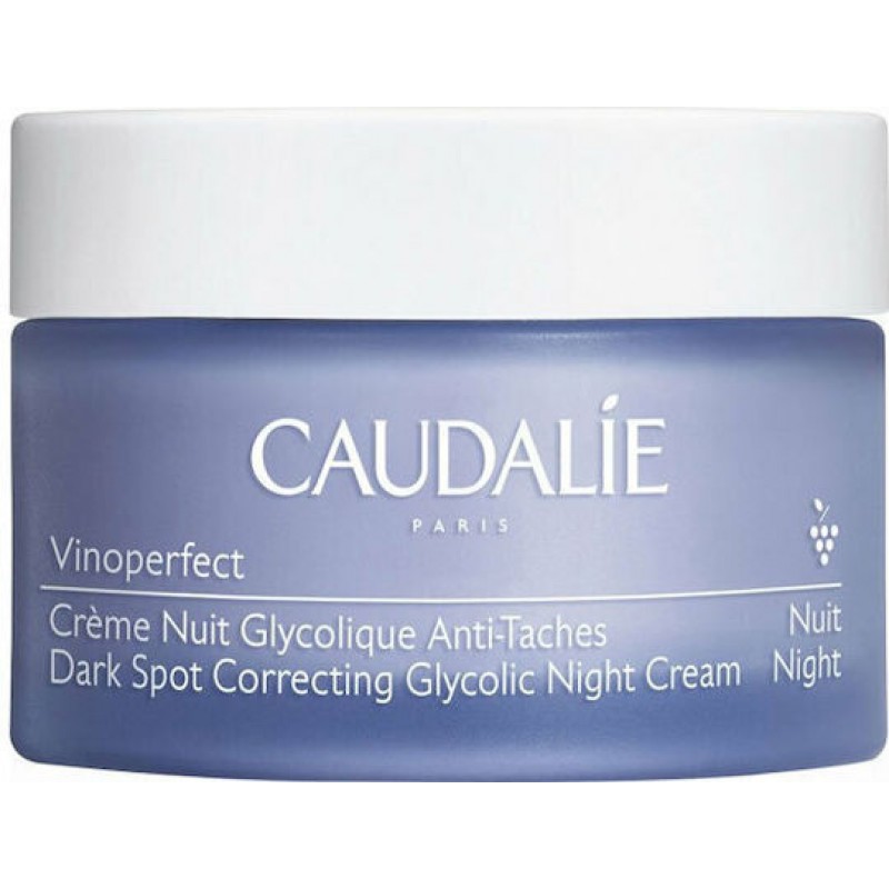 Η σύνθεση της Vinoperfect Dark Spot Correcting Glycolic Night Cream είναι πλούσια σε γλυκολικό οξύ, ένζυμα παπάγιας και Βινιφερίνη, ένα πατενταρισμένο συστατικό της Caudalie που προέρχεται από τον χυμό του αμπελιού και προσφέρει εξαιρετική δράση κατά των κηλίδων.